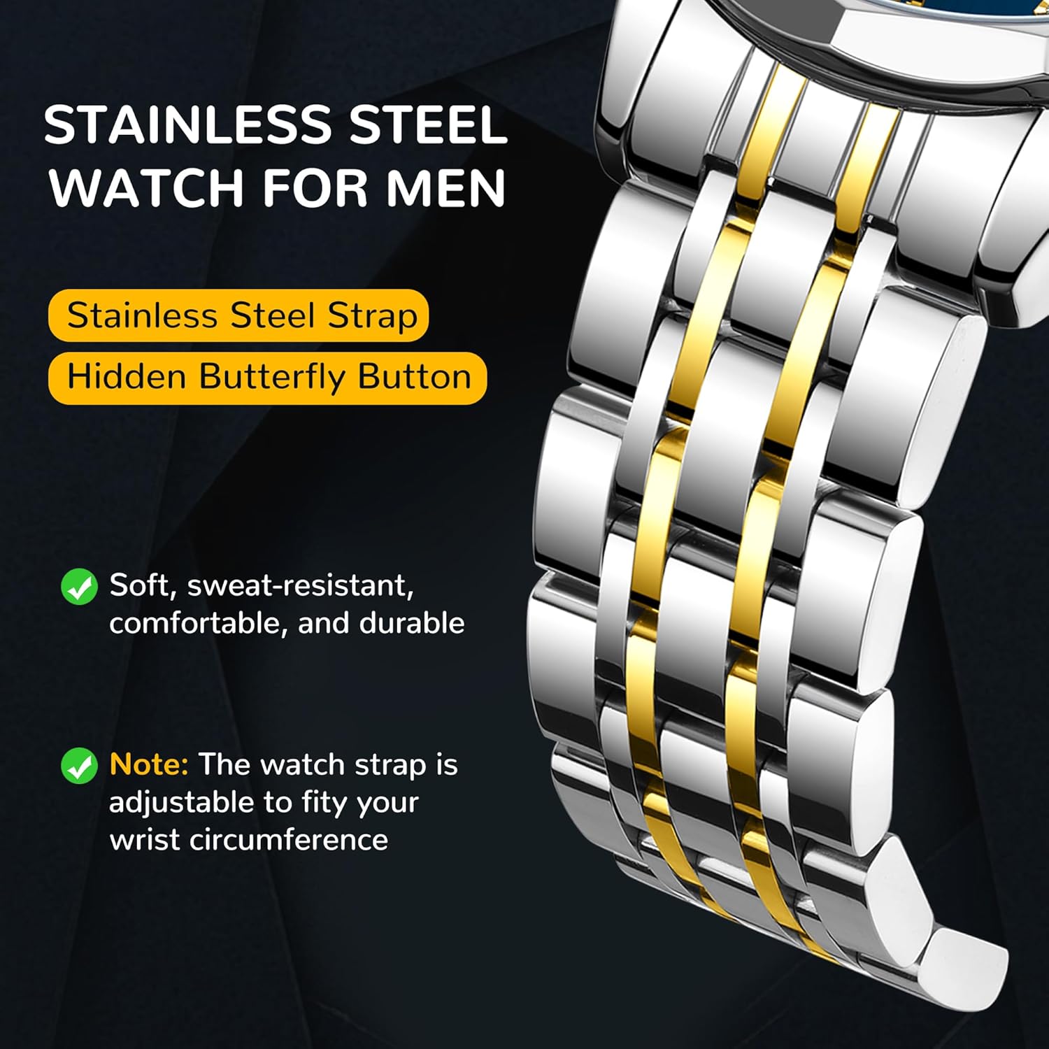It's a nice chronograph watch with a timelessly styled watch face. It has decent movement and comes with waterproof rating up to 30m deep. It's no Rolex nor even a Casio, for that matter. But c'mon, we knew that already. Nonetheless, it'll do nicely as a dress watch to go with a suit in a matching color. Its strengths are its versatility, sleek modern watch face, and low cost. The last point is important since you don't constantly need to worry about damaging it or losing it as you can just order another one without so much as batting an eye. No anxiety attacks here, I can tell you that.If I had to nitpick, it's that I'm not too crazy about the silicone band that comes with the watch. If you're into sports, then sure. But I'm not sure why one would wear a chronograph watch to say, a quick jog around the park when we have smart watches for that these day. Moreover, the band does tend to get sticky with a semblance of moisture which I've grown to dislike after some use. My advice? If you like the watch enough to make it a daily, then I'd get it replaced with either a fabric or a metallic band if the user can relate there. All in al, I still quite love it. And for under $30 at the time of writing? Shoot, sign me up again. 5 out of 5 stars.