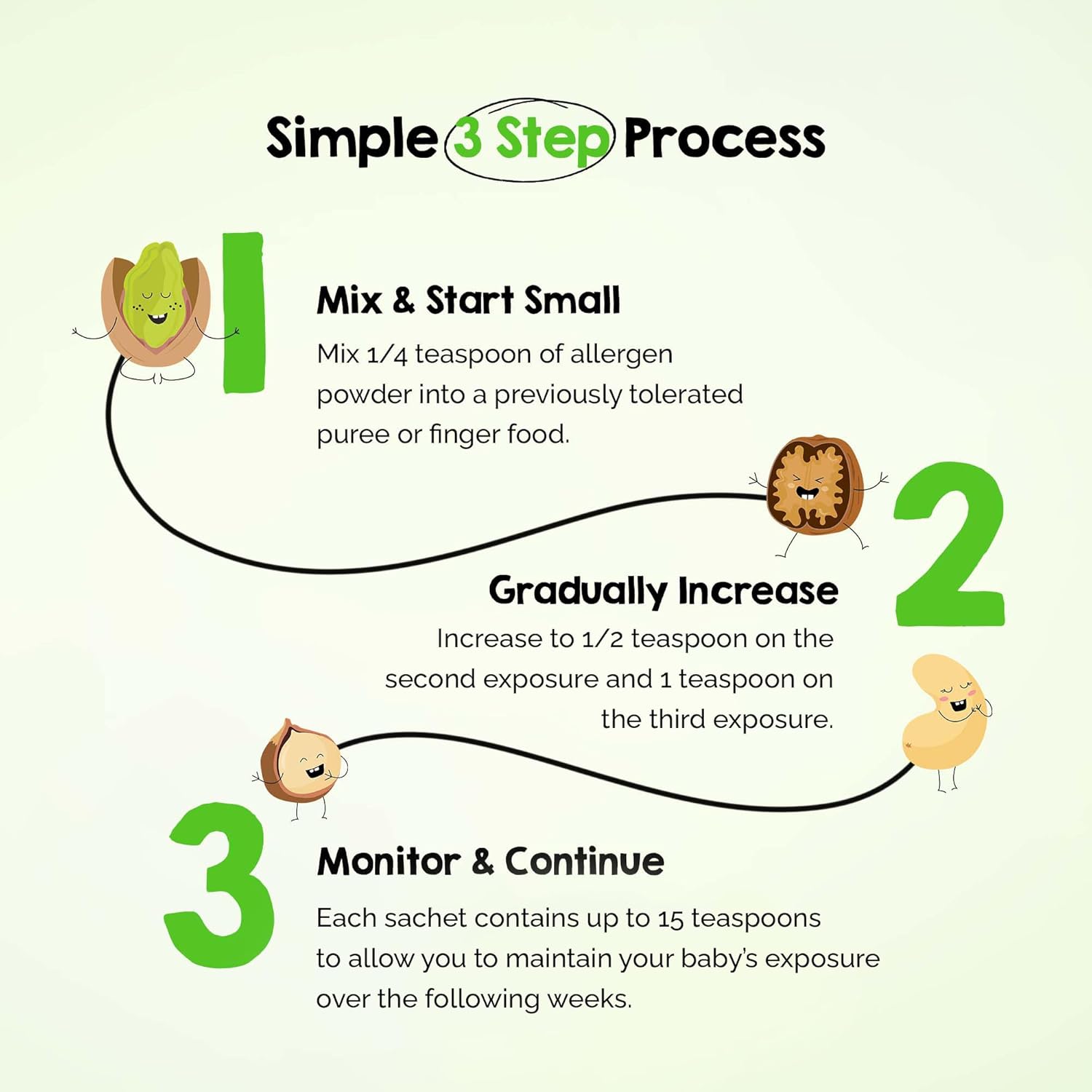 As a first time parent, the idea of introducing allergens felt way more overwhelming than I expected. I did my best on my own with things like milk, egg, and peanut, but once you get beyond the basics, it gets tricky fast. This kit made that whole process feel manageable instead of stressful. Everything is clearly laid out, easy to follow, and honestly kind of inviting, which is not something I expected to say about allergen introduction.The kit comes with 14 individual allergen sachets, each with its own expiration date and a cute character name that makes the process feel less intimidating. I love that the instructions recommend starting with just a tiny amount mixed into a food my baby already tolerates, so if there were ever a reaction, it would be easy to isolate. It takes the guesswork out of introducing things like pistachio, pecan, sesame, or soy, which are not exactly things I keep on hand for a baby. Being able to work through them one at a time with a clear plan has been a huge confidence boost.My baby is nine months old, so I felt a little behind going into this, but once I opened the box and saw how organized everything was, that anxiety disappeared. The step by step guidance makes it easy to slowly increase amounts and then continue offering small servings to help maintain tolerance. There’s even an instructional video available if you want extra reassurance, but the written instructions were more than enough for me.This kit is definitely an investment, but I understand the price once you see the quality, the thought put into it, and how much stress it removes. It turns something that felt overwhelming into something that feels doable and even empowering. If you want a structured, parent friendly way to introduce allergens before your baby’s first birthday, this is a really well designed option and something I’m genuinely glad to have in our routine.