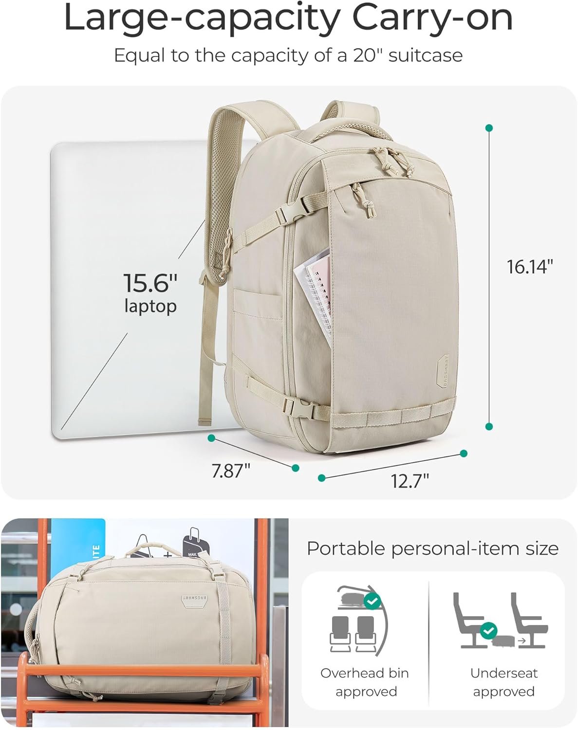 I just used the bag for the first time and it was perfect! It has a great amount of compartments that are made for convenience, its comfortable to wear, the quality is great, even stuffed full it fits as a personal item on the plane. I was able to pack 2-3 days of clothes, all my bathroom essentials, books, charges, laptop, it also has a water bottle holder. I love the pocket on the back, that is where I keep my passport and it feels secure in that location.