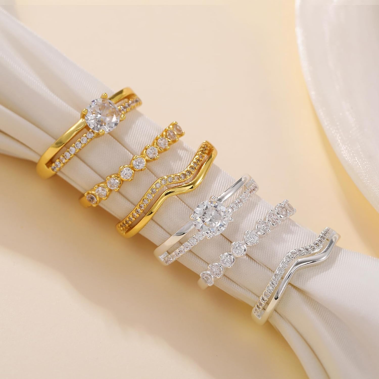 These rings are very pretty. I got them for a gift and know they will love them. I like they are adjustable and I do not have to worry if they will fit.